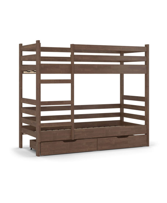 Дерев’яне двоярусне ліжко Тоні це практичний варіант для невеликої кімнати. Міцна конструкція з натурального бука витримує великі навантаження, зручна та довговічна. Поверхня покрита безпечним лаком у темно-горіховому кольорі або фарбою. Просторі спальні місця підходять і дітям, і дорослим, а ортопедичні ламелі додадуть комфортності вашому сну.