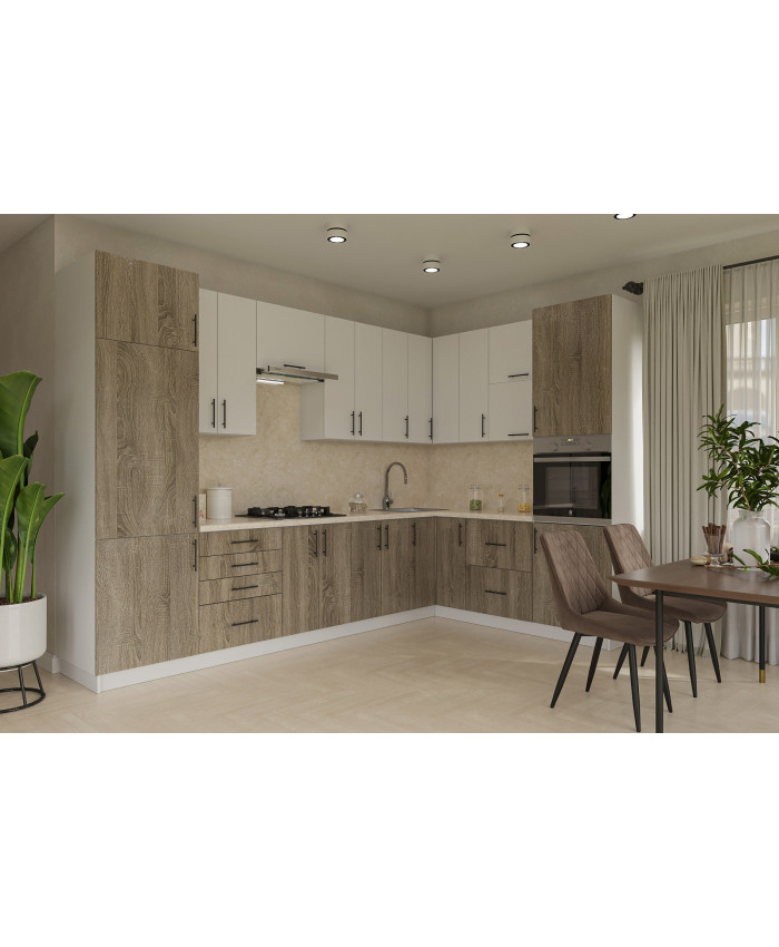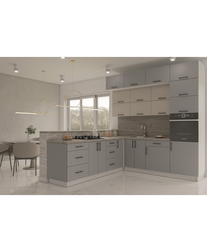 Ціна на сайті вказана за 1 м/п (врахована висота верхів 72 см, без стільниці). Для прорахунку кухні звертайтесь до менеджера.