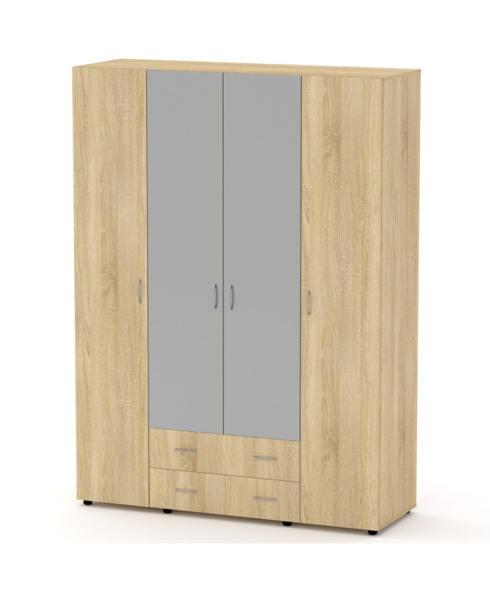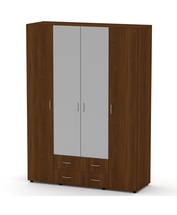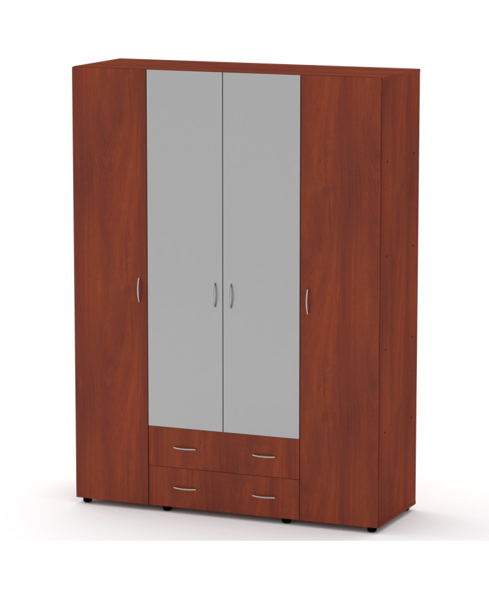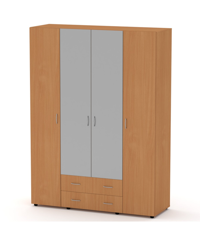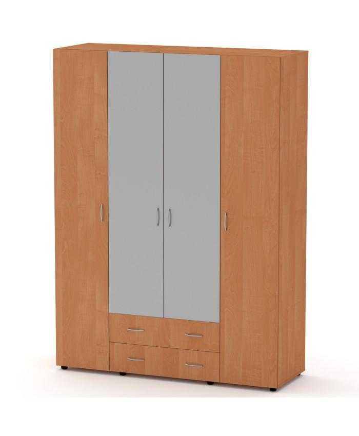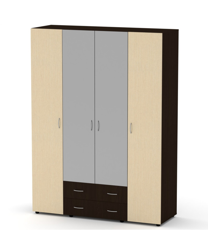 Шикарна чотиридверна шафа з двома висувними ящиками та дзеркальними фасадами.