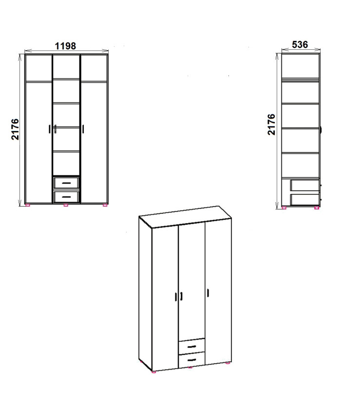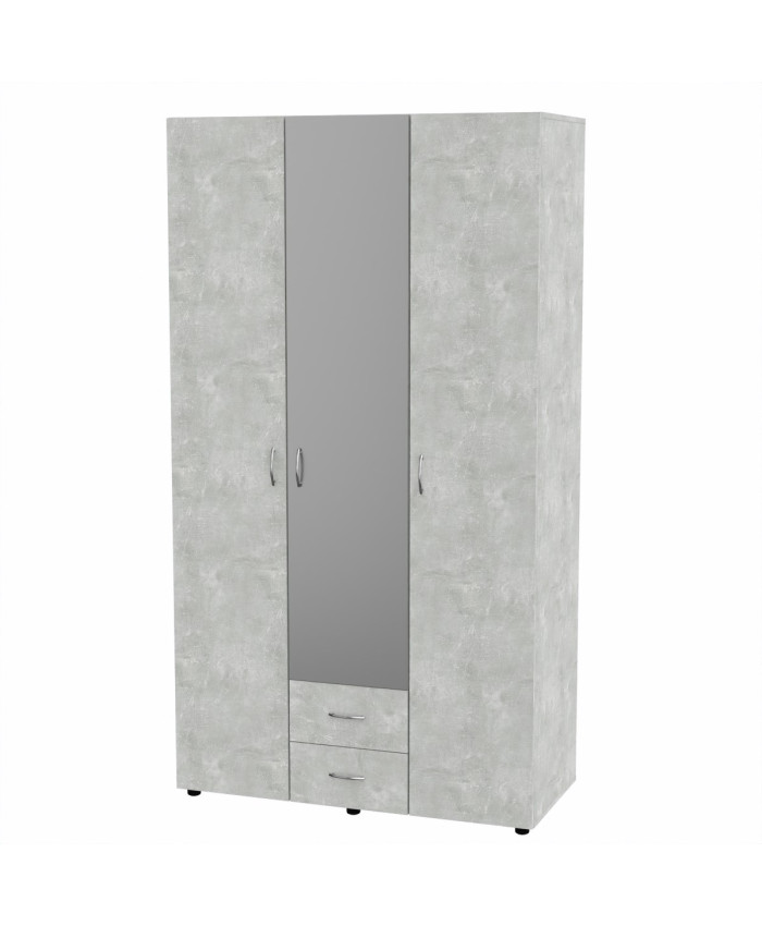 Тридверна шафа з двома висувними ящиками та дзеркальним фасадом посередині. Класичний дизайн, різноманітність колірних рішень дозволять йому вписатися в інтер'єр Вашої квартири з легкістю. Виготовляється із високоякісного ламінованого ДСП. Габарити: