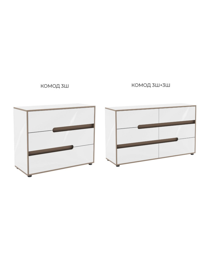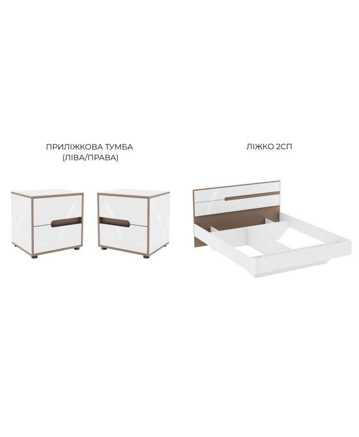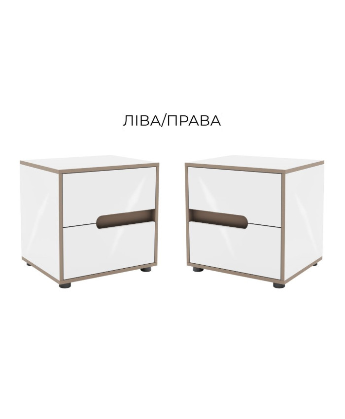 Корпус і Фасади з ДСП: Німфея Альба (білий) глянець. Вставки Тоффі (лате-капучино) ЛДСП.