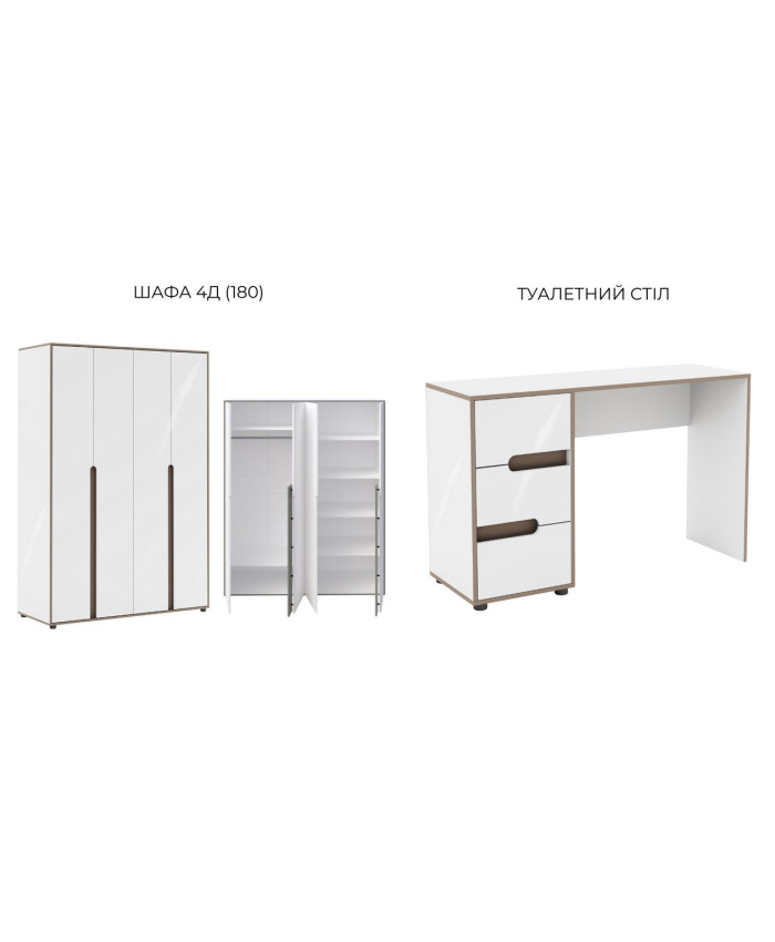 У вартість на сайті входять: ліжко 1,6, шафа 4Д, приліжкова тумба - 2 шт, туалетний столик.