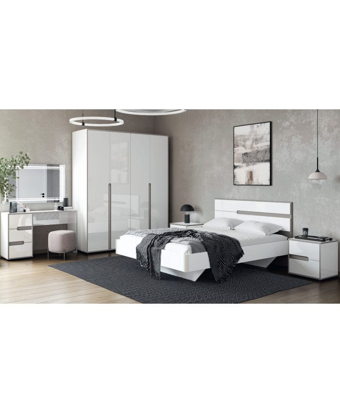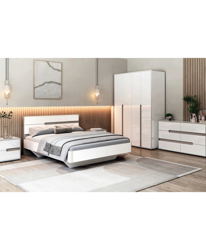 Корпус і Фасади з ДСП: Німфея Альба (білий) глянець. Вставки Тоффі (лате-капучино) ЛДСП.