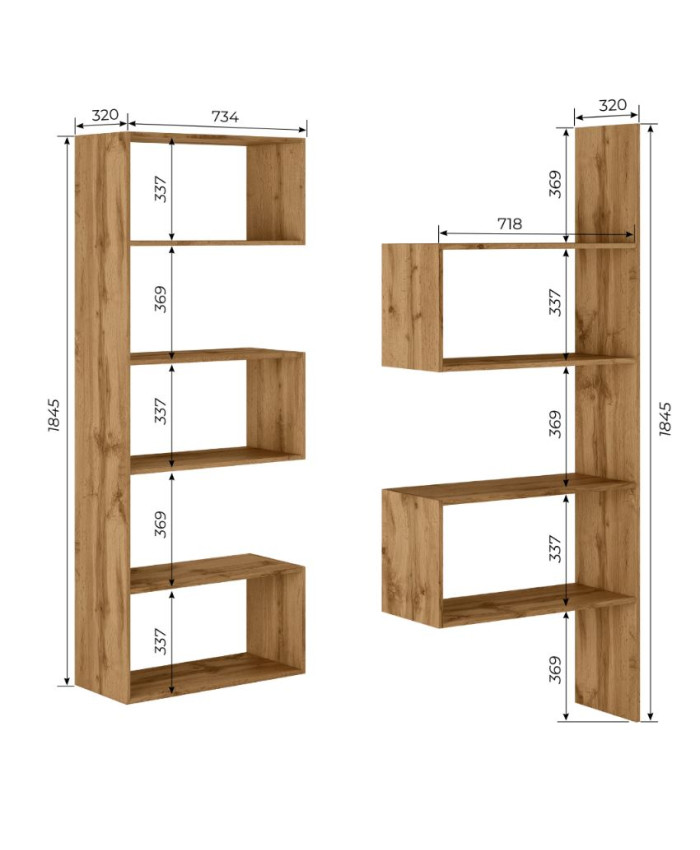 Стелаж 1: Ширина 734 мм, Висота 1846 мм, Глибина 320 мм.